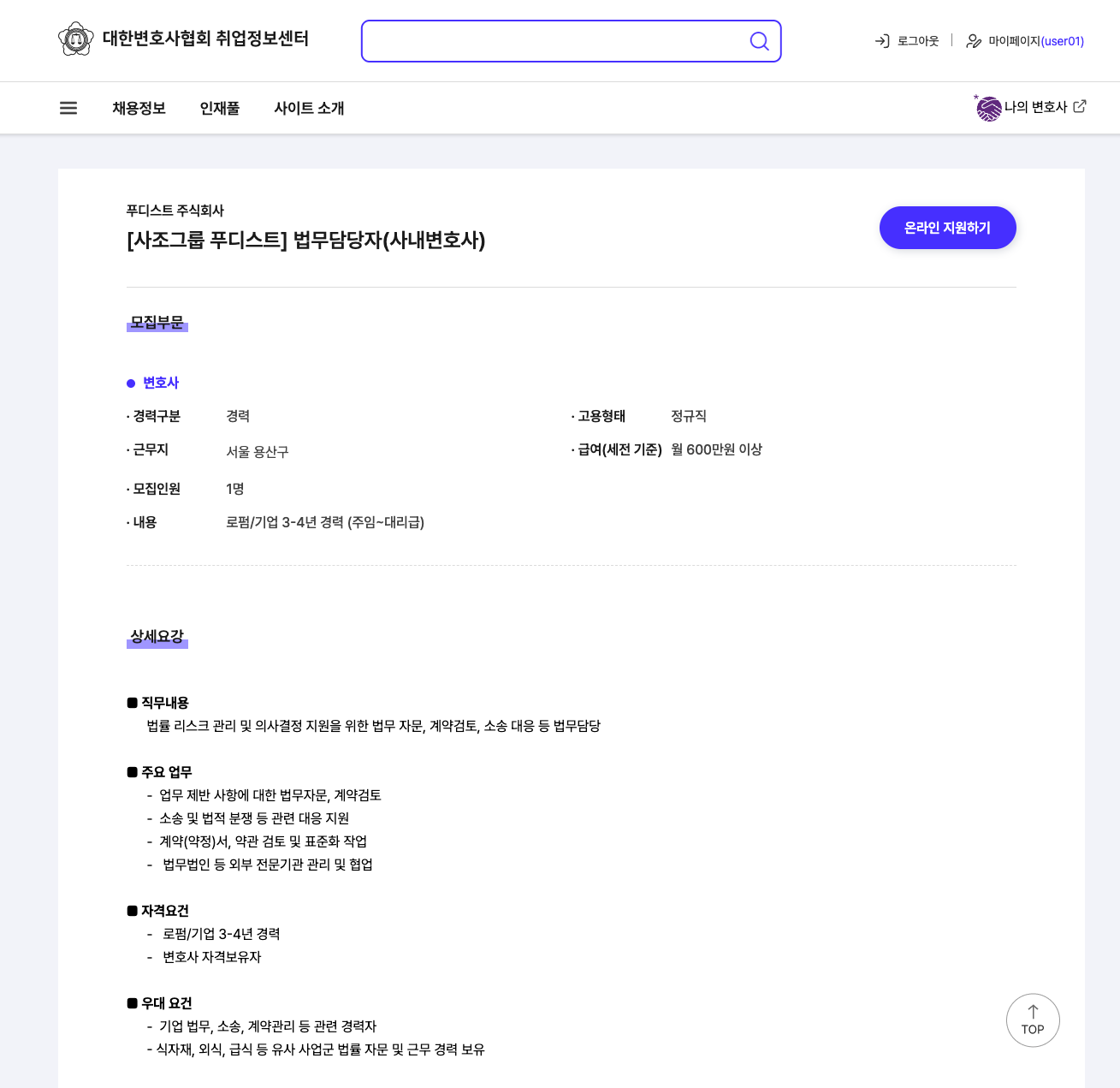 대한변협 취업정보센터 웹사이트 구축